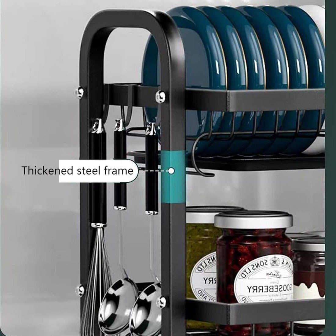 SPACE SAVING: Free up 30% kitchen counter space for a neat and clean kitchen. Large compartments can hold multiple sizes of utensils, especially the sides of the dish rack, which are humanize designed for Utensils holder.